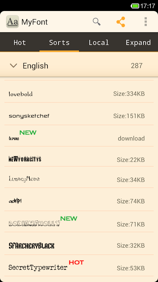 MyFont is designed to installbeautiful fonts on your phone. You can download and use hundreds of fonts to cutify your phone . It ‘s super easy to change your phone’s font.! MyFont assembles hundreds of fancy fonts of differrent styles and is very easy to be applied.Make your font different and change with your mood.